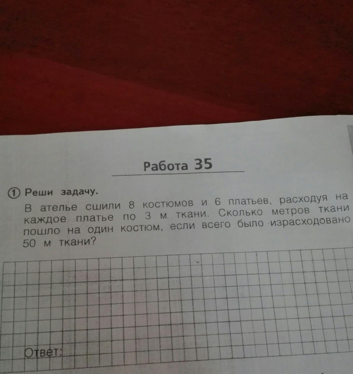 32:8=4(м) ткани нужно на 1 костюм