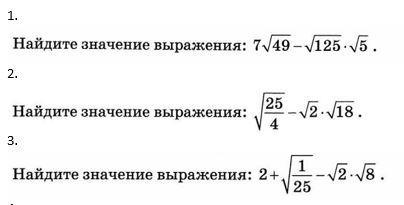 1)7√49-√125*√5= 7√7*7-√125*5=7*7-√625=49-25=24