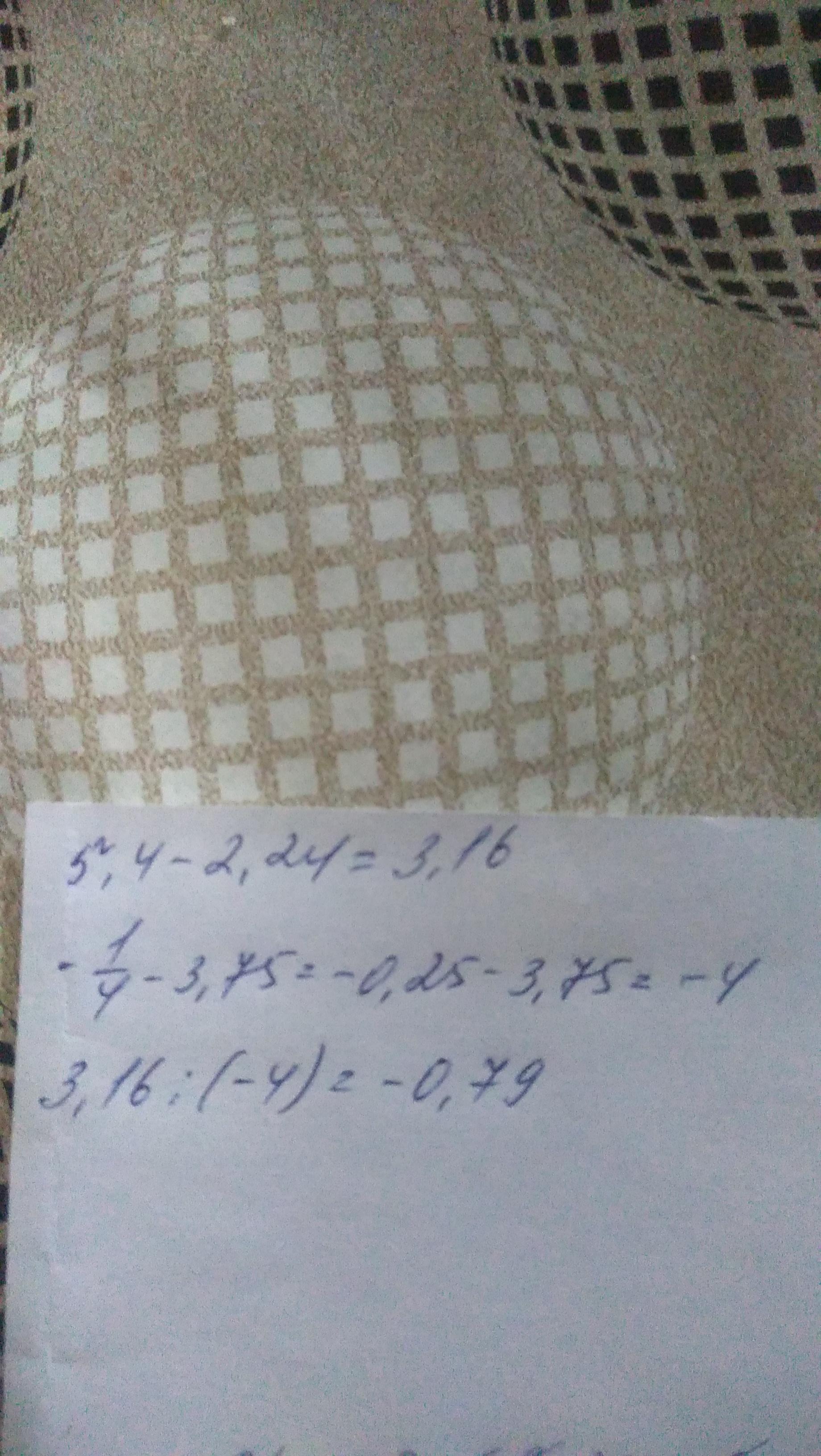 (5,4-2.24):(-1/4-3,75)=(5,4-2.24):(-0,25-3,75)=