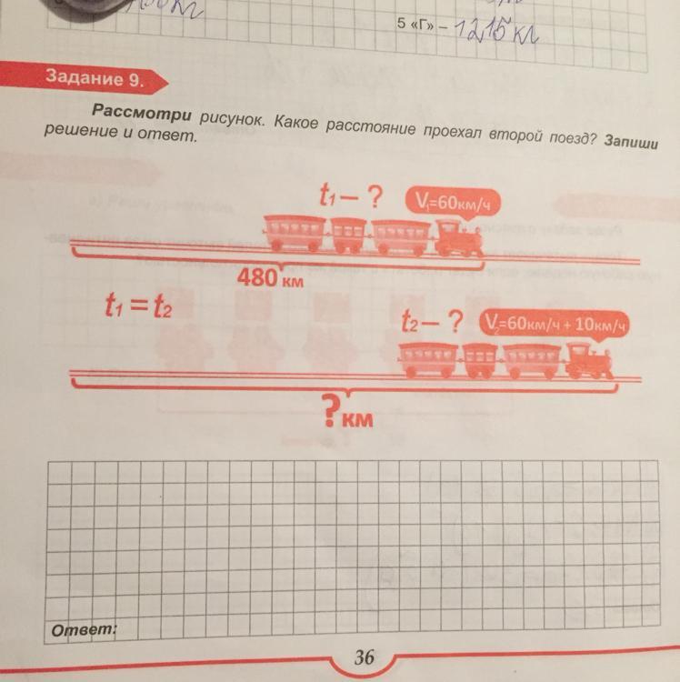Рассмотри рисунок. Какое расстояние проехал второй поезд? Запиши решение и ответ