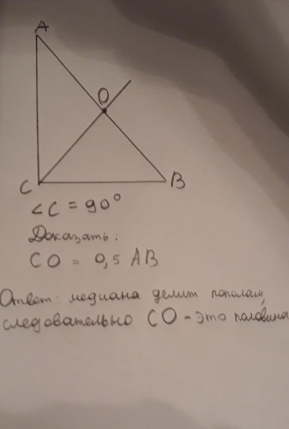 прямоугольный треугольник ABC угол C = 90 градусов угол CO - медиана . доказать угол CO = 1/2 AB