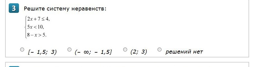 2x+7<=4 2x<= -3 x<=1.5