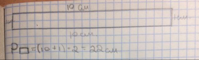 памагити пожалыста. Начерти прямоугольник со сторонами 1 см и 10 см. Найди его периметр.