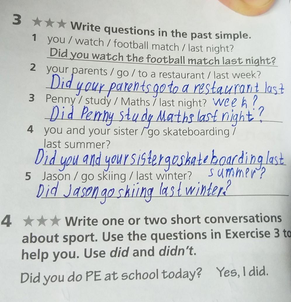 Write one or two short conversations about sport. Use the questions in Exercise 3 to help you. Use did and didn't.