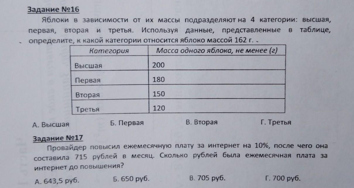 16. Яблоко массой 162 г будет относиться ко второй категории, в которую попадают яблоки массой от 150 г до 180 г.