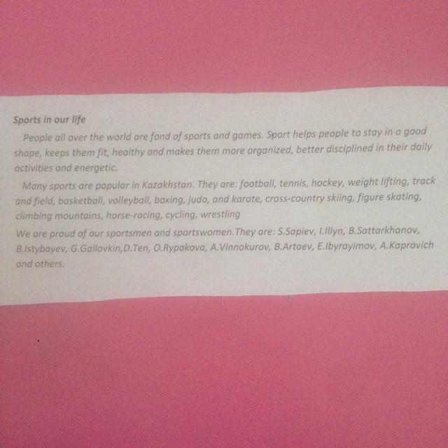 Я бы не дословно, но назвала бы Роль спорта в нашей жизни.