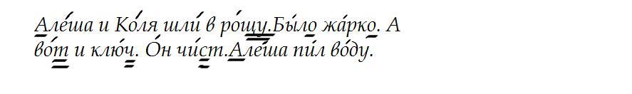 Алёша -ё.коля-о. рощу-о.было -ы.жарко-а.воду - о.это ударение