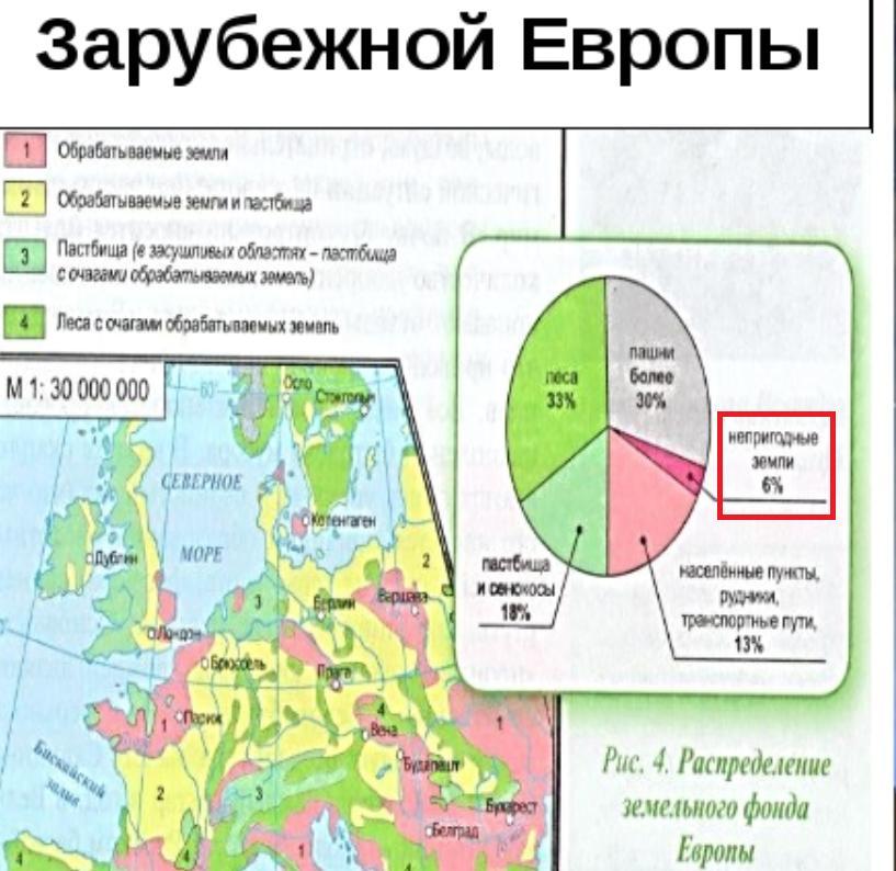 Определите процент неиспользуемых и малоиспользуемых земель от общей площади территории Зарубежной Европы