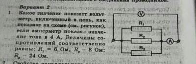 Физика!!!! какое значение покажет вольтметр, включенный в цепь как показано на схеме