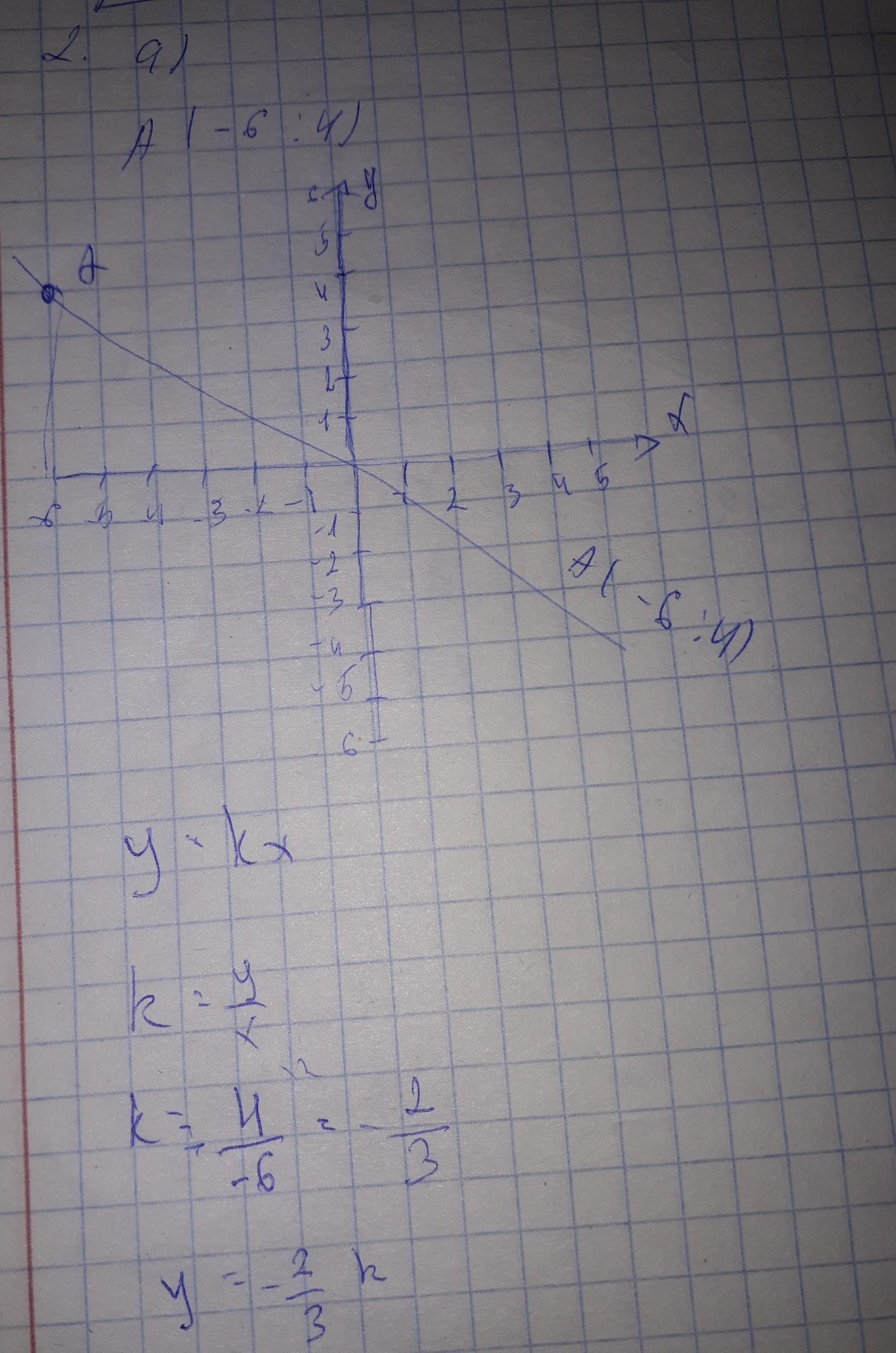 а) Постройте график прямой пропорциональности, проходящий через точку А(-6; 4) b) По графику запишите формулу прямой пропорциональности. Срочно!!!