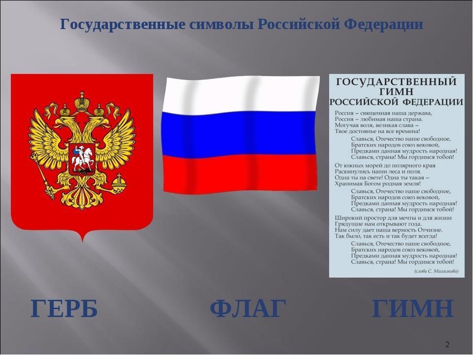 Государственные символы Российской Федерации: герб, флаг, гимн