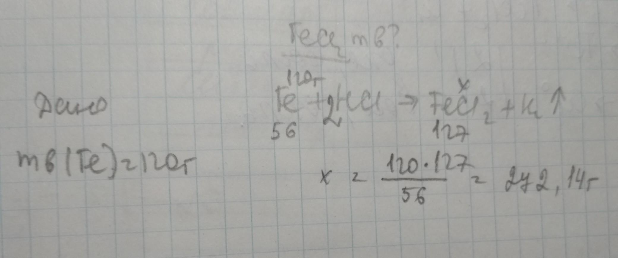 Вычислите массу хлорида железа 2 валентного образовавшегося при взаимодействии 120г. железа с соляной кислотой