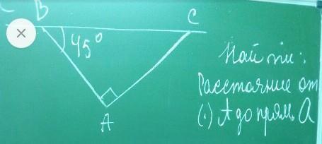 возможно я не права, не полностью вникла в суть, но: в данной задачи нужно было найти расстояние, а не градусные меры. а также, ваше решение не до конца верное. на рисунке изображён прямоугольный треугольник(угол А = 90°), поэтому корректнее указать сумму углов в 90°, а не в 180° либо вычесть и 90° и 45°.