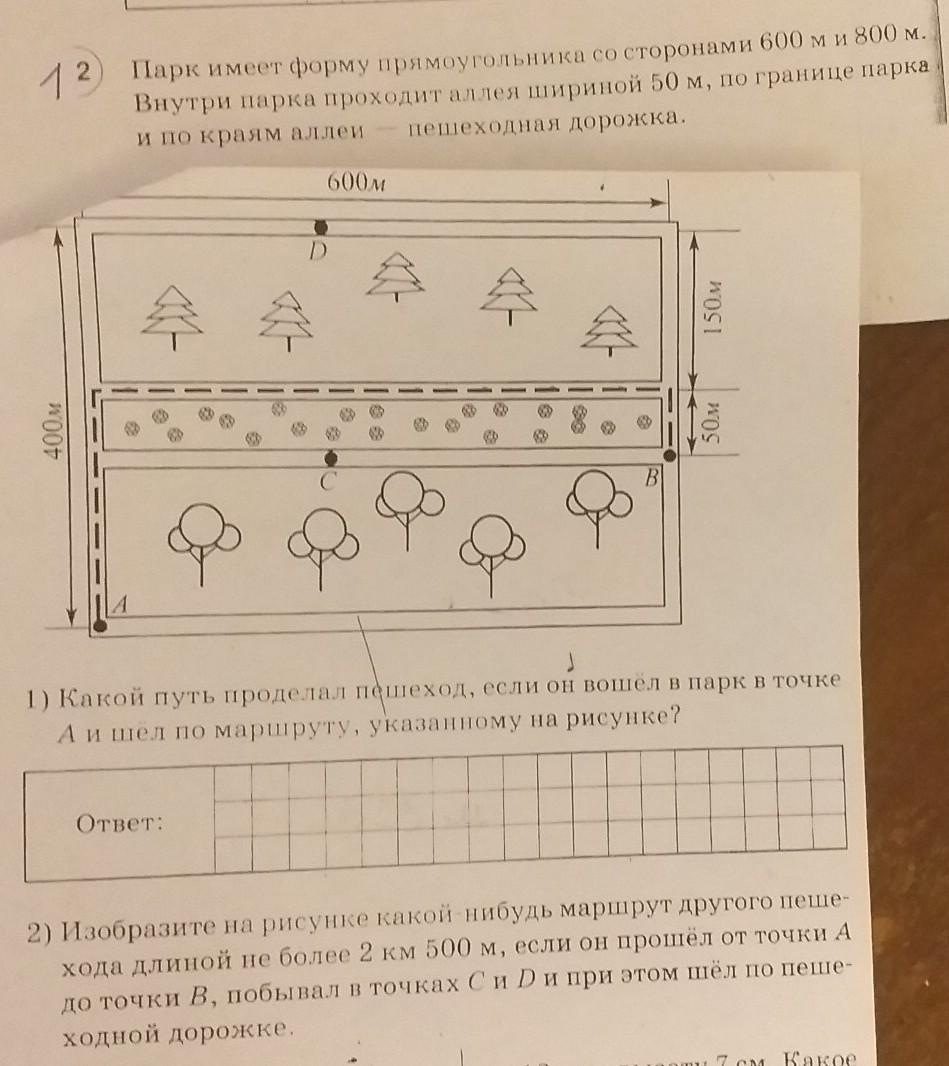 3) 400+600+150+600+50+600=2400(м) - путь ADCB