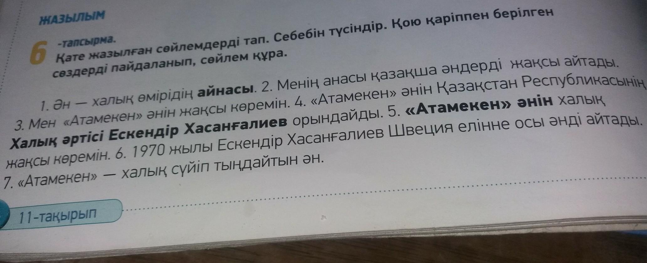 Ән -өмір айнасы.Менің анам қазақша әндерді жақсы айтары.~~~~~ Республикасының~~~~.«Атамекен»әнін халық жақсы көреді.~~~елінде~~~~