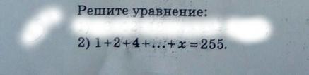 Решить уравнение: 1 + 2 + 4 + ... + x = 255