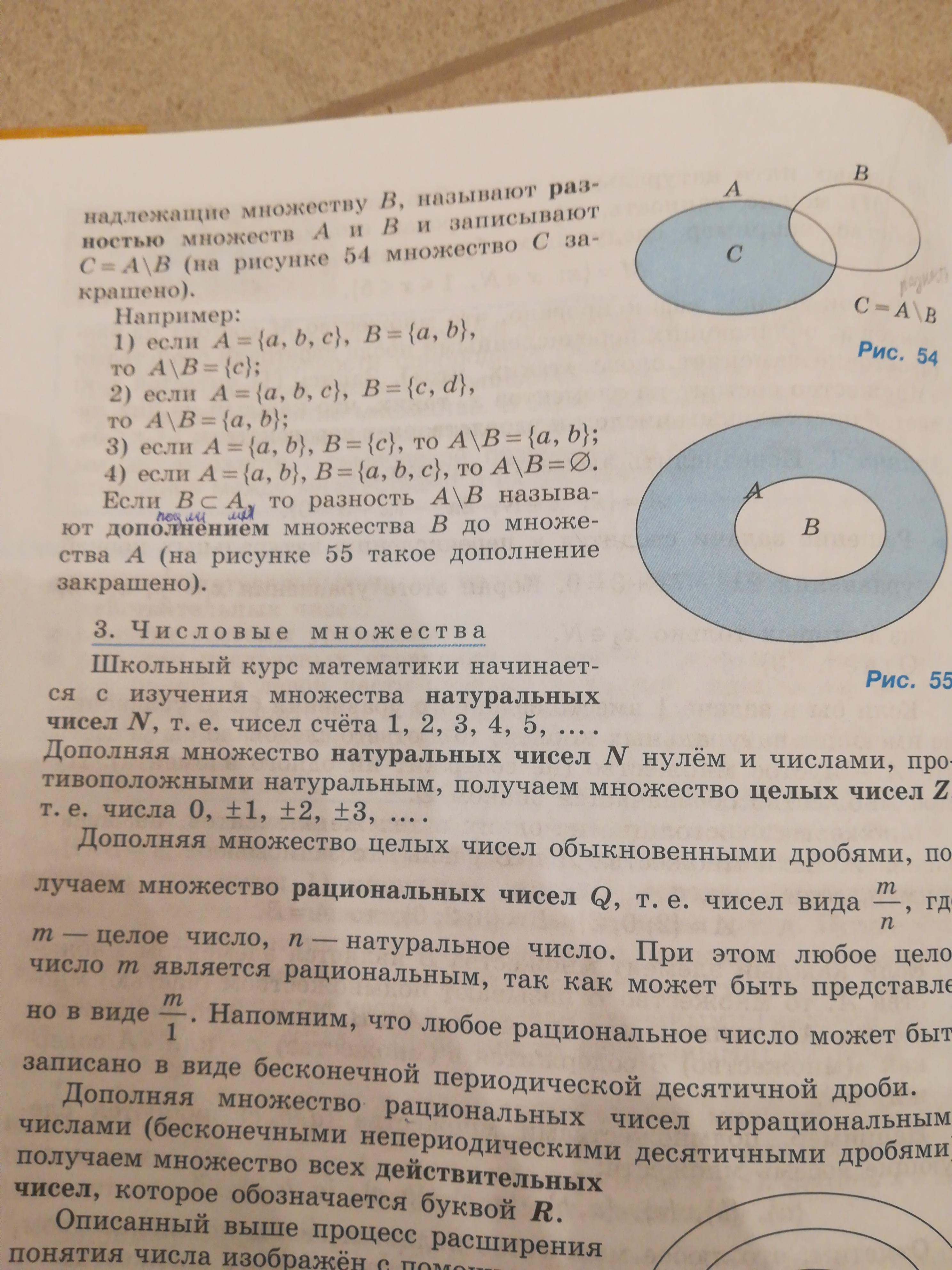 Даны множества A = ( 1, 3 , 5, 6) B= (2 3 4 7) W ( 1 2 3 4 5 6) найти: 1)Пересечение множеств А и B. 2) Объединение множеств A и B. 3)Разность множеств B и A. 4Дополнение множеств A до W