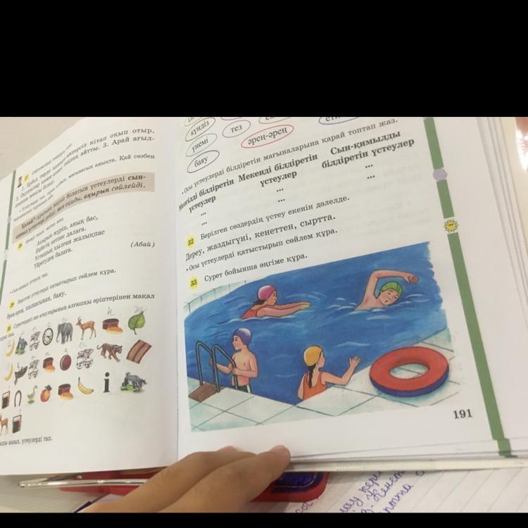 Мен суда жүзіп үйренгім келді. Достарым бассейнге баруға ұсыныс берді. Сөйтіп мен суда жүзу үйірмесіне жазылдым. Сәрсенбі, жұма сайын осында келемін Мұнда мен секілді балалар көп екен. Бәрі суда жақсы жүзіп жүр.Суда жүзу денсаулыққа пайдалы, дене бітіміңді түзу болады. Өкпемен тыныс алуың жақсарады. Бассейн суы сондай мөлдір,таза. Қанша жүзсең де шаршамайсың!