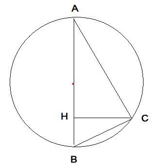 В окружности проведен диаметр AB. Из точки C, лежащей на окружности опущен перпендикуляр CH на диаметр. Найдите угол ABC если AC равно 2 CH