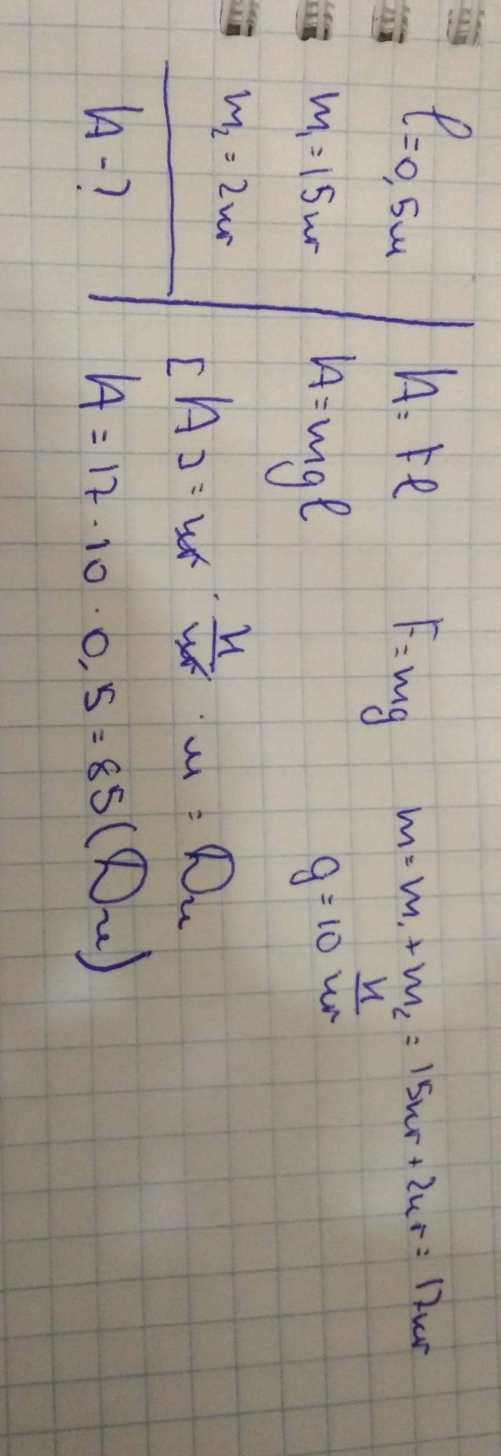 Человек поднимает ведро с песком на высоту 0,5м.Масса ведра 2кг,масса песка 15кг. Какую работу совершил