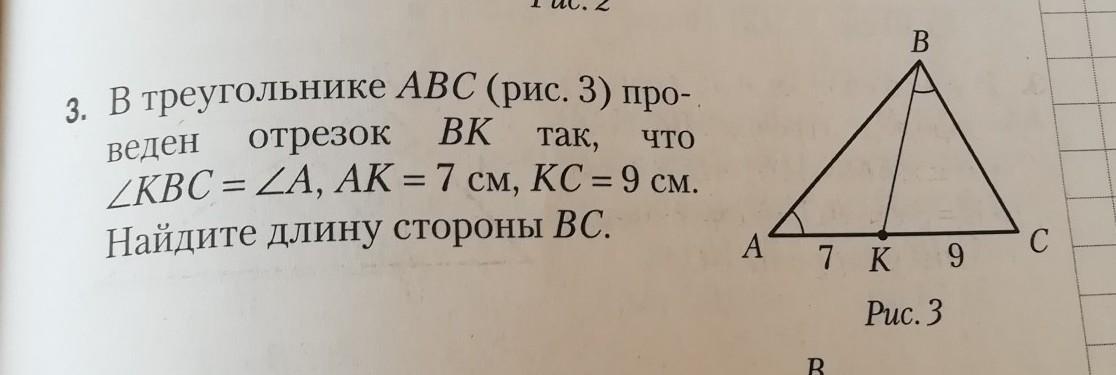в ΔABC и КВС один угол равный а второй уголС общий значит тоже равный