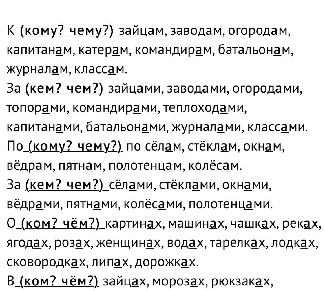 По (?) по сёл.м, стёкл.м, окн.м, вёдр.м, пятн.м, полотенц.м, колёс.м.
