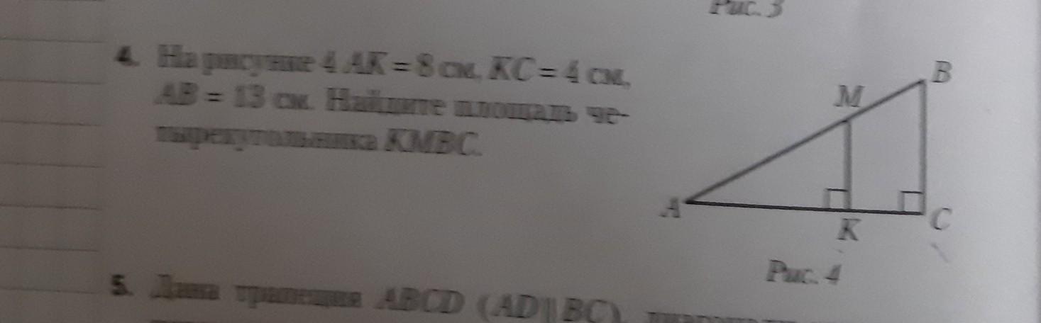 МК || BC ⇒ КМВС - трапеция. Площадь трапеции равна произведению полусуммы оснований на высоту.
