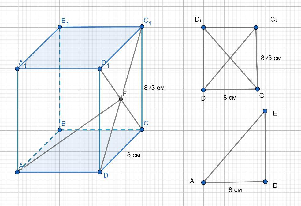 Из ΔAED AE= √(AD² + DE²) = √(8² + 8²) = 8√2 см.