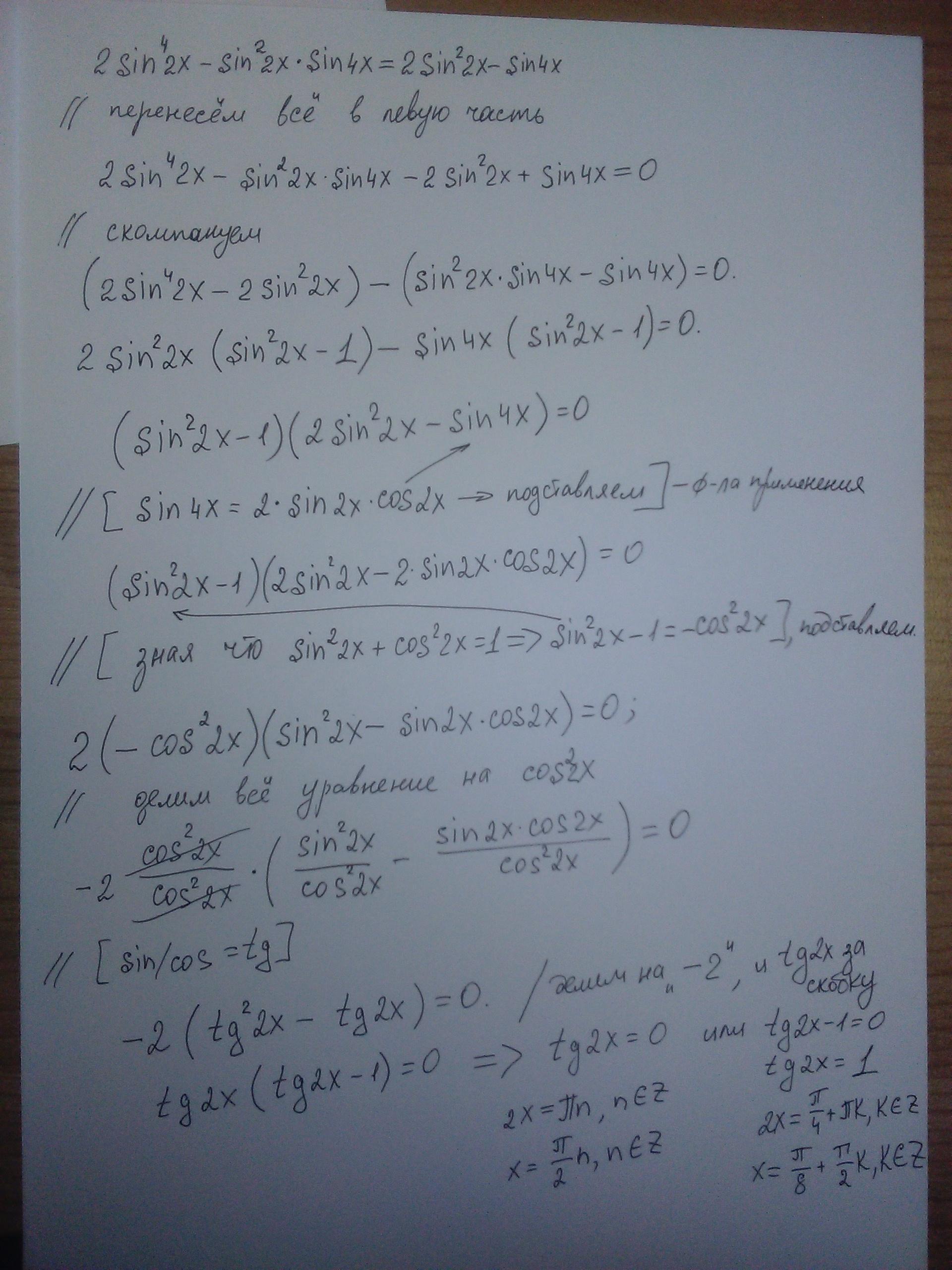 2sin^4(2x)-sin^2(2x)sin(4x)=2sin^2(2x)-sin(4x)​