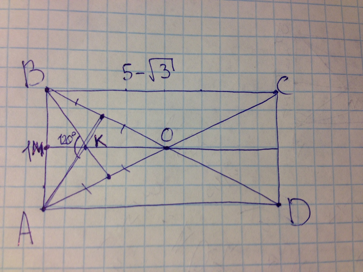 Если АВ как я понял =1, то МН=ВС=5-корень3, МО=1/2МН=(5-корень3)/2