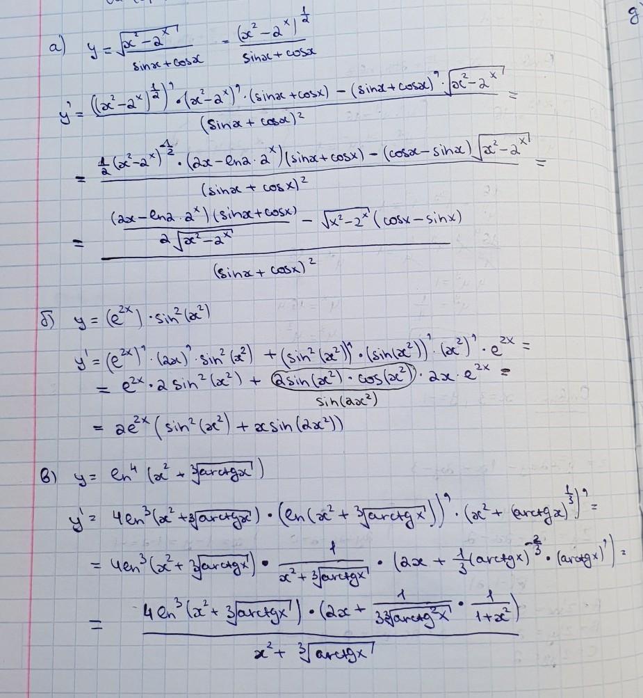 Как в б) получили ... +(sin^2(x^2))` * (sin(x^2))` * (x^2)`= ... ?