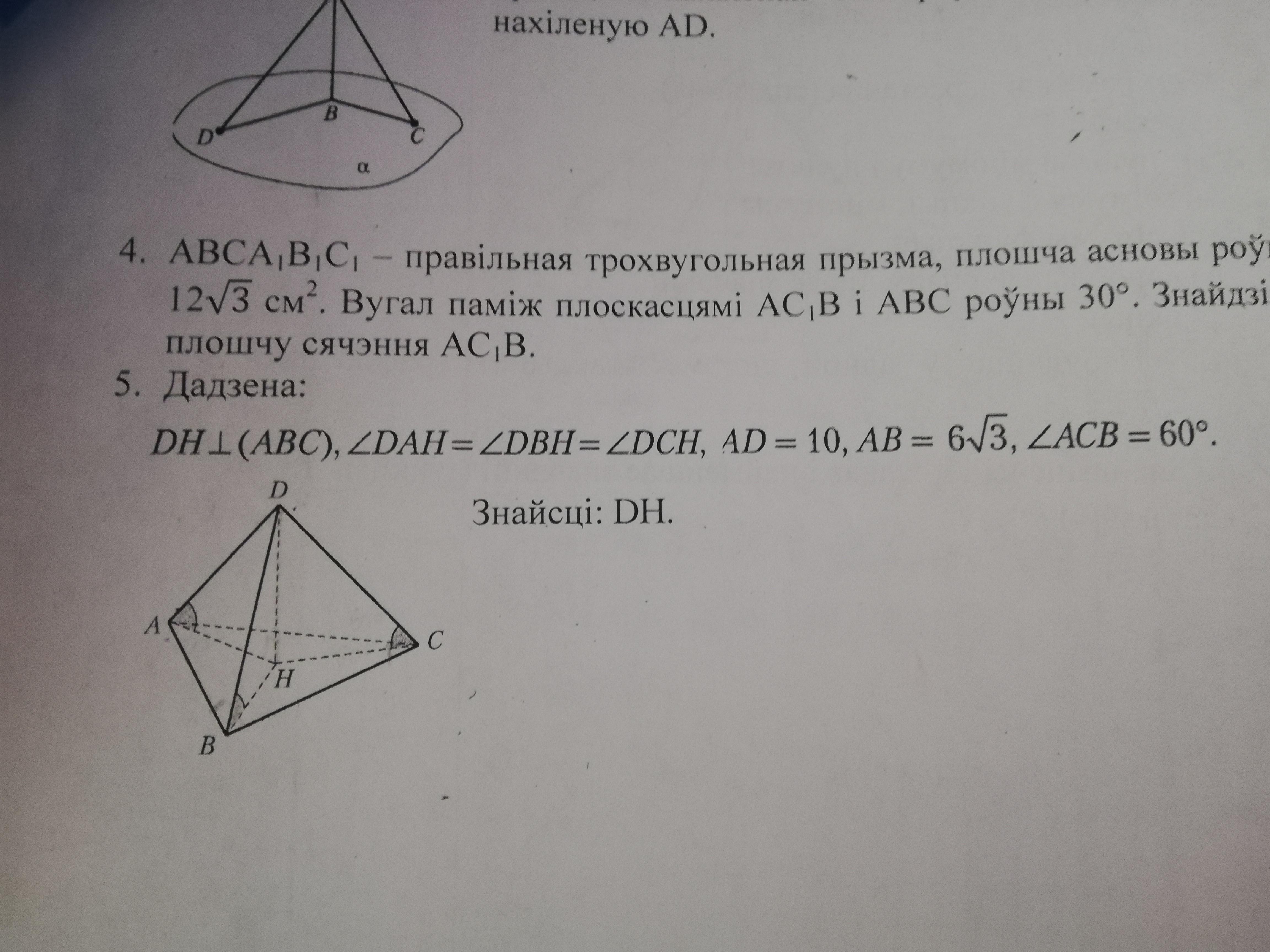 Заметим, так как DH - перпендикулряно плоскости ABC, а углы у наклонных равны ⇒ из равенства трегольников и наклонные и их проэкции равны. ⇒ в основании лежит правильный (равносторонний треугольник.