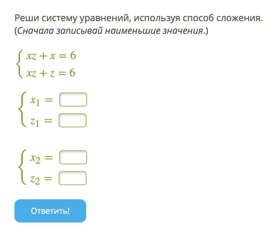подставим в первое уравнение вместо х z,получим: