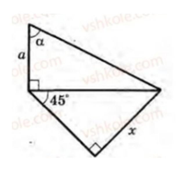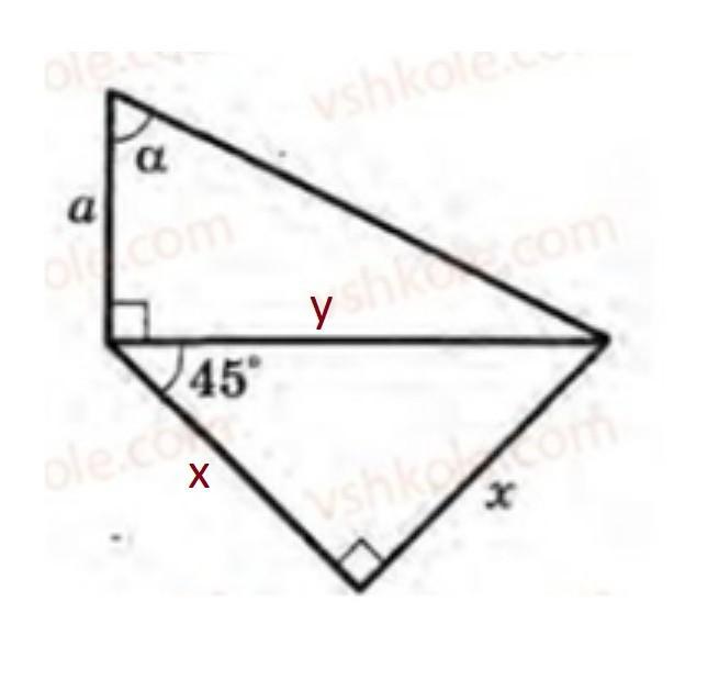 Так как в прямоугольном треугольнике один из углов = 45°, то и второй острый угол = 45°, ⇒ треугольник равнобедренный с катетами, равными x.