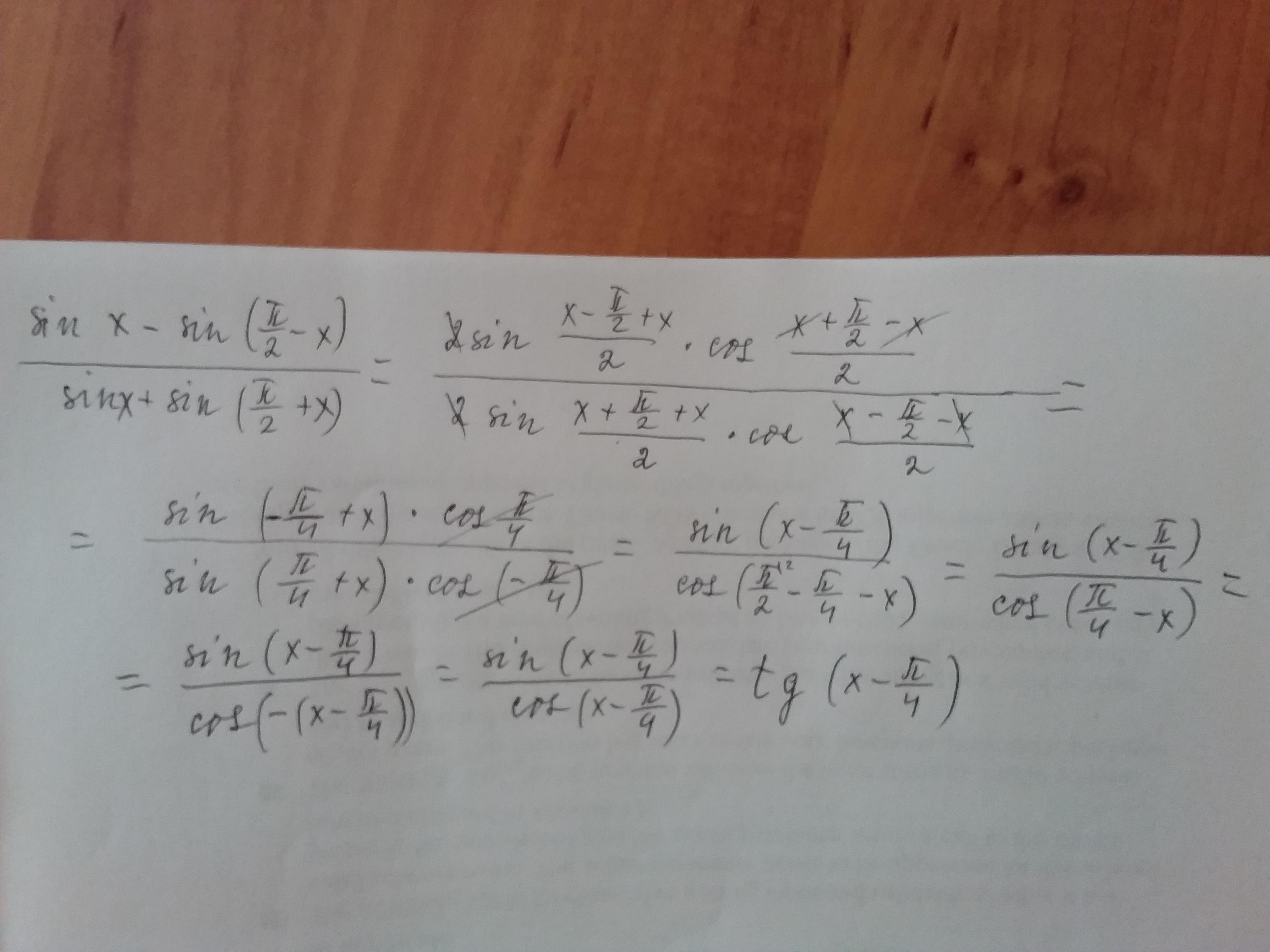 в 10 классе-можно попробовать получить такой ответ,а в 9 -нет,т.к.,в девятом не учат формулы разности/суммы синусов или косинусов,по крайней мере,в моей стране.