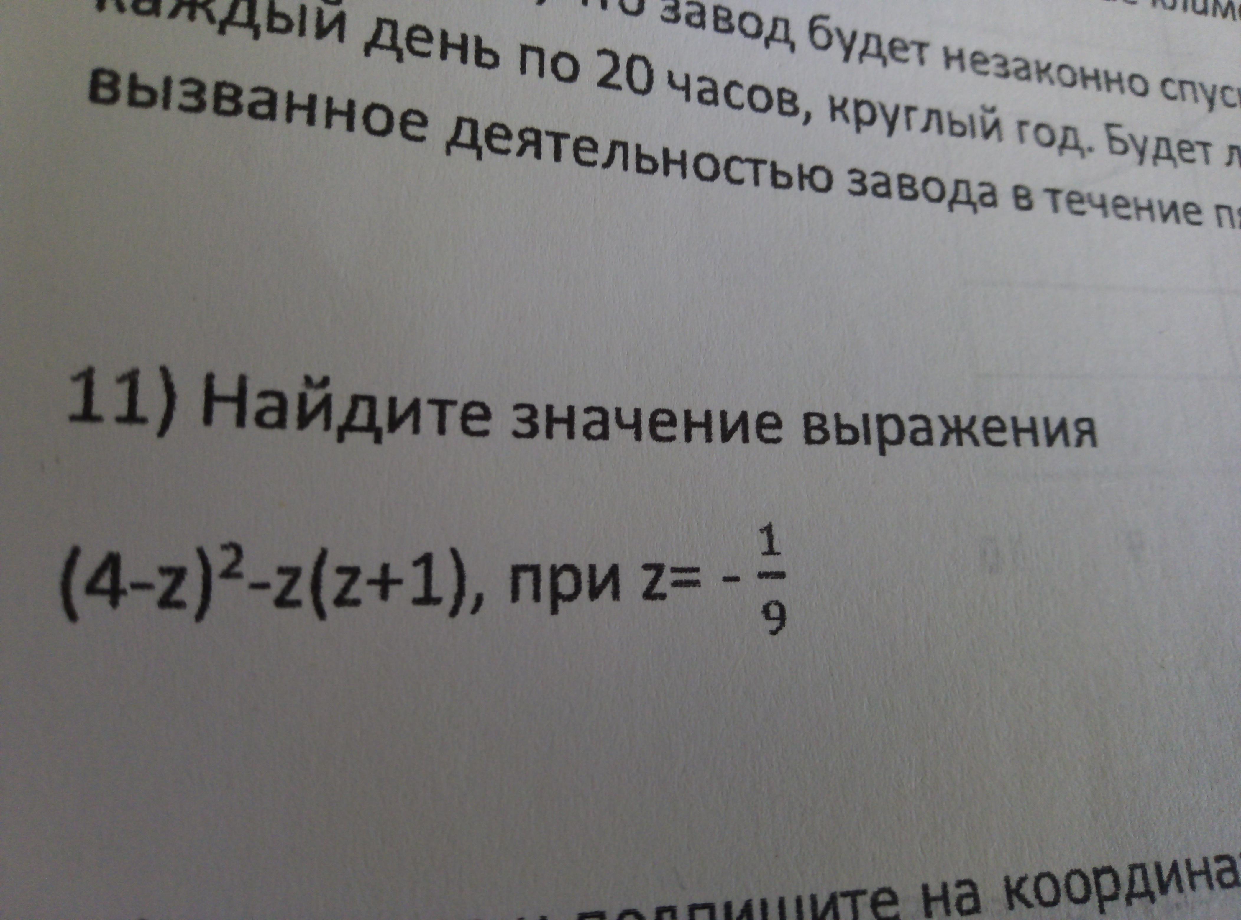 (4-Z)² - Z (Z+1) = 16-8Z+Z²-Z²-Z=16-Z