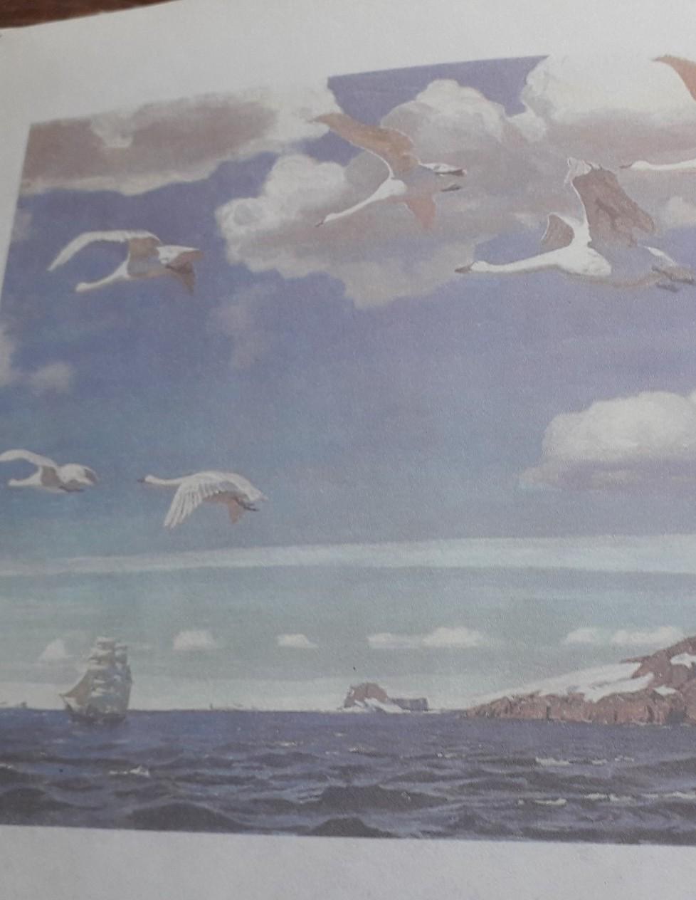 Мне очень нравится эта картина.Она изображает море.Я сразу чувствую этот запах морского бриза.Чайки летают на голубом чистом небе.Где-то на горизонте виднеется корабль.Все его паруса подняты.Ветер гонит его вперед.Море волнуется.Оно отливает серебряным блеском.Художник очень красиво и главное точно нарисовал вид моря.Облака на небе такие густые и пушистые словно вата парящая над морем.На берегу виднеется легкий покров снега.Пушистый,белый ковер.Было бы очень приятно оказатся сейчас там