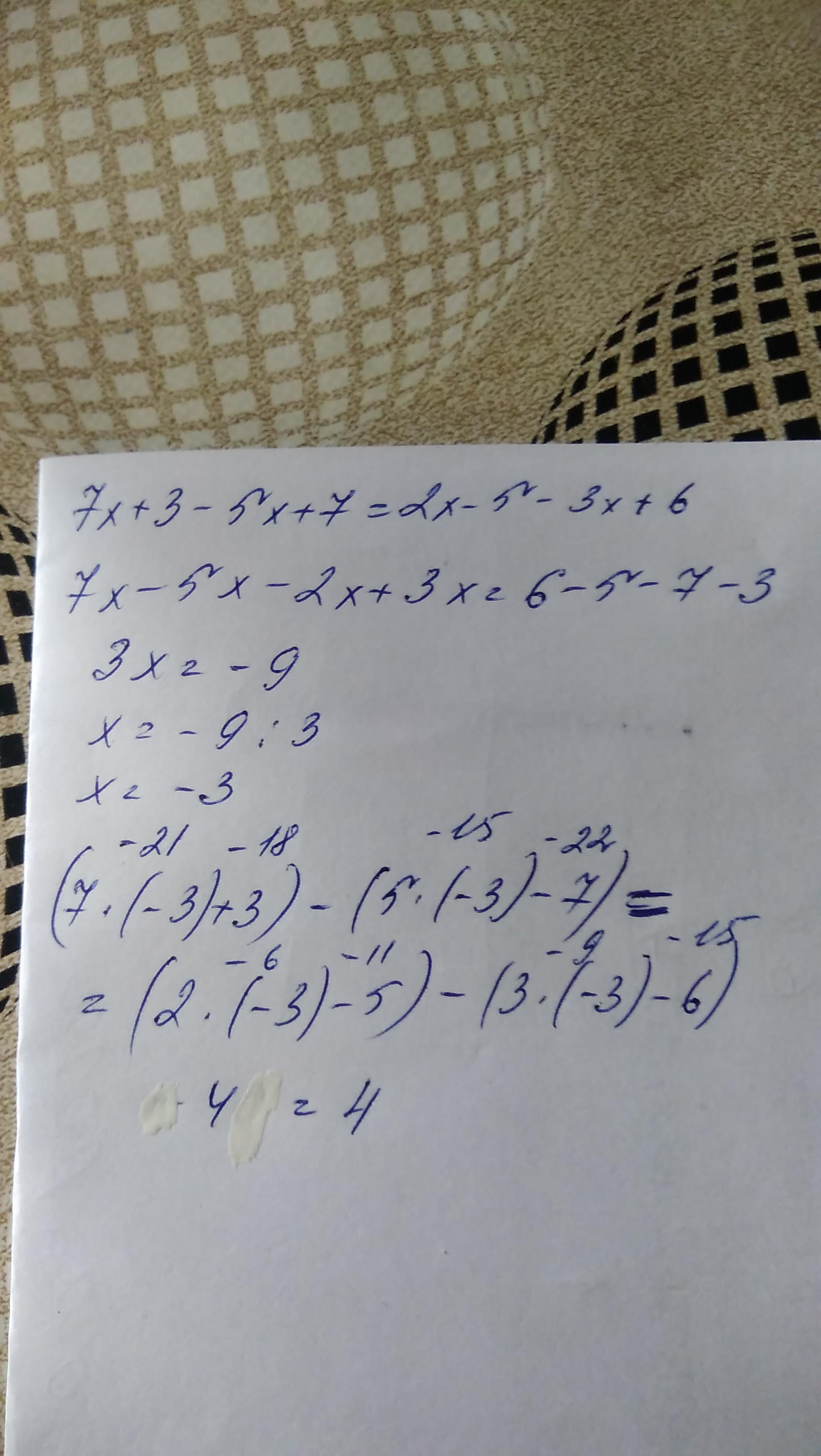 (7x+3)-(5x-7)=(2x-5)-(3x-6) с проверкой ​