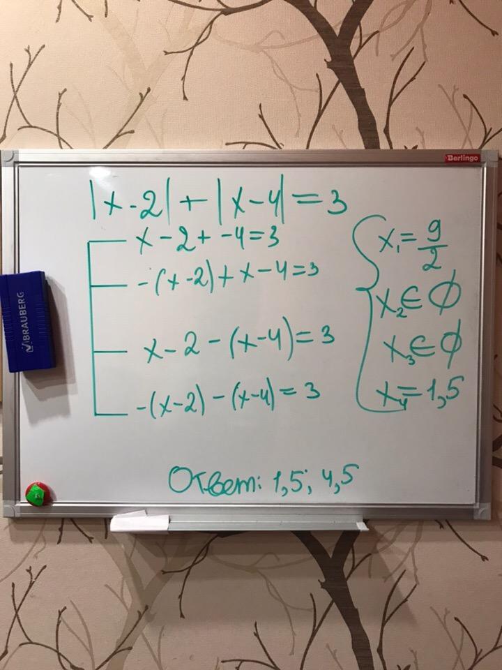 |х-2|+|х-4|=3