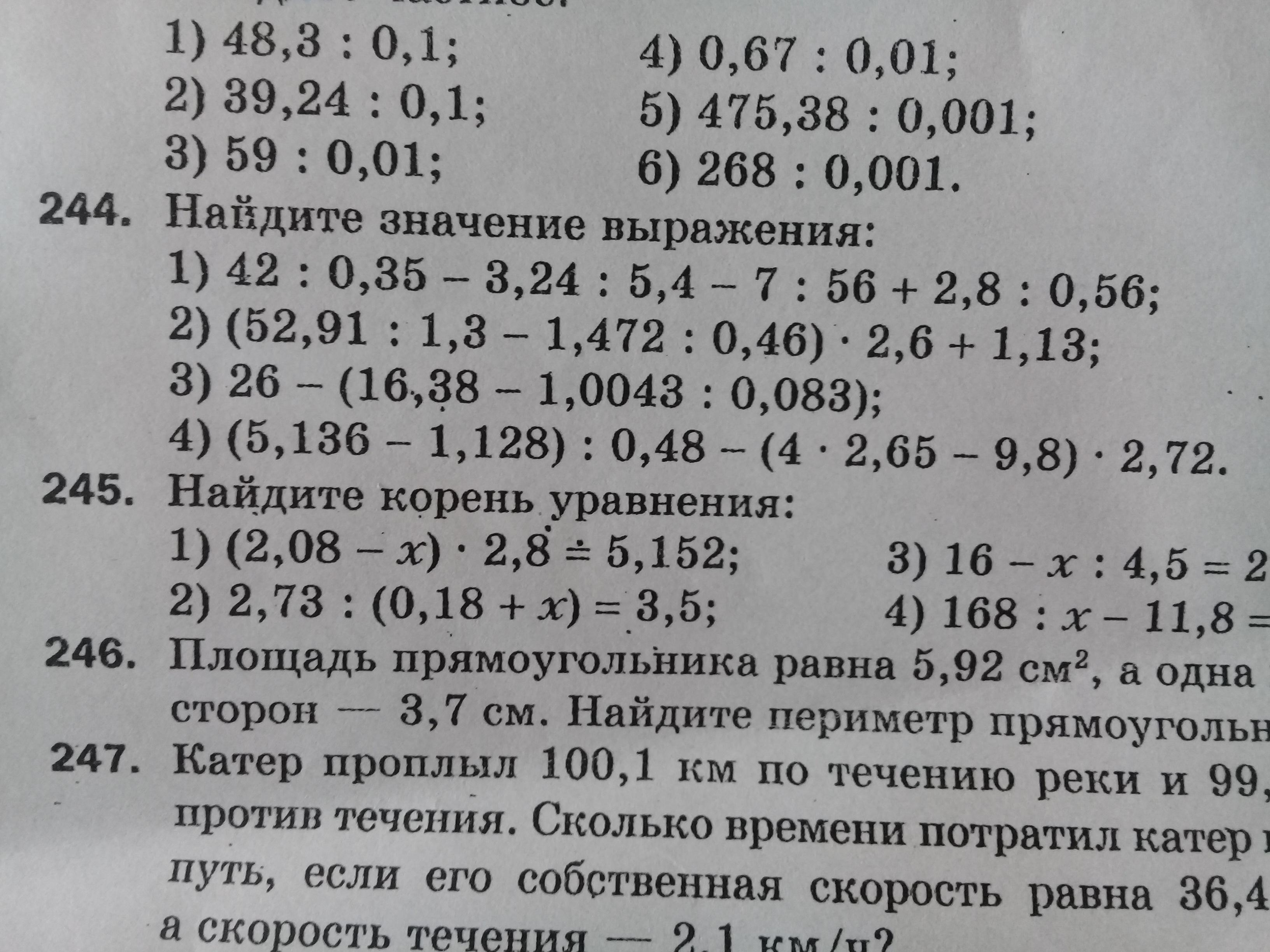 1) 42 ÷ 0,35 - 3,24 ÷ 5,4 - 7 ÷ 56 + 2,8 ÷ 0,56