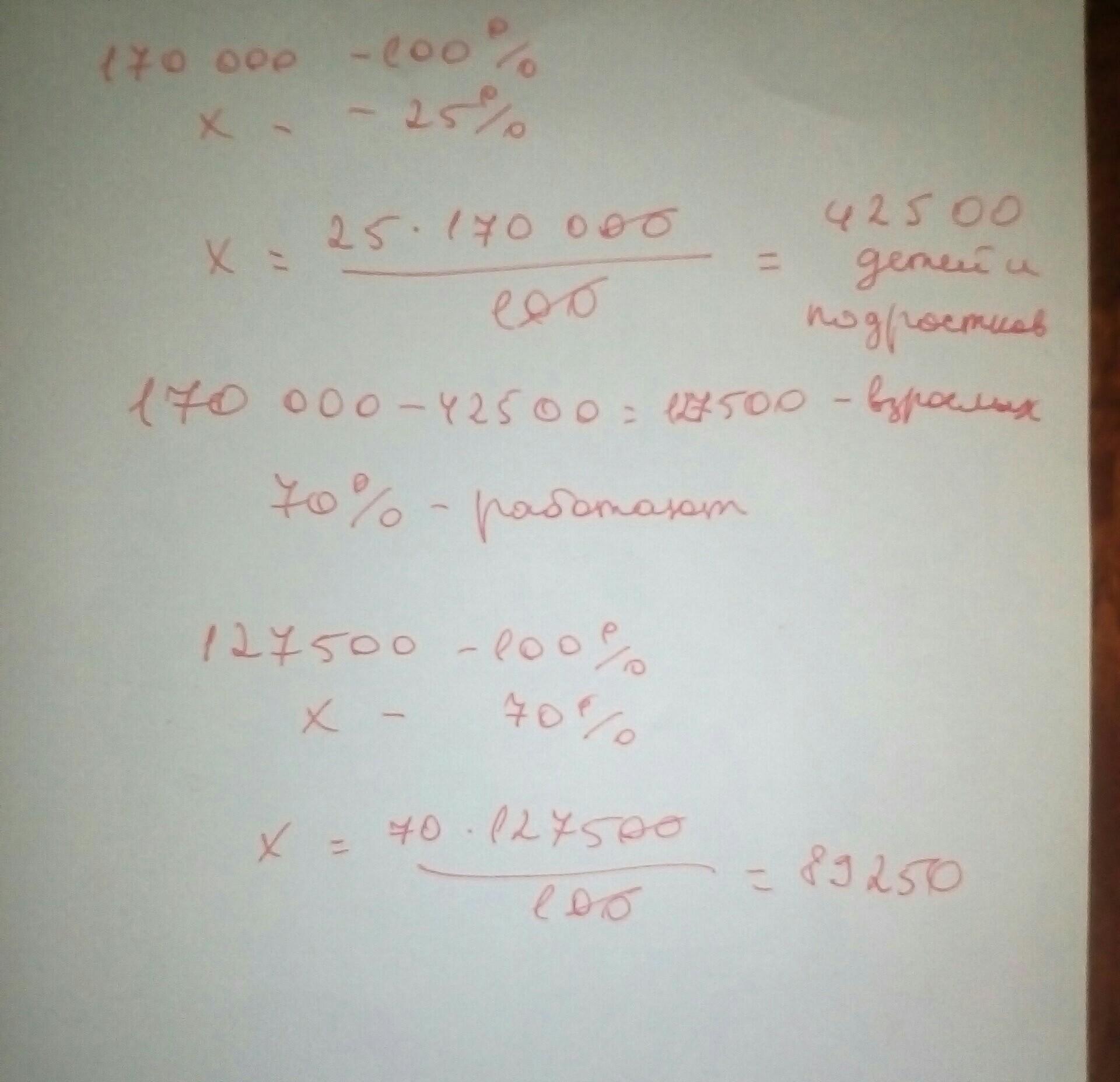 170000-93500=76500 (работающие)