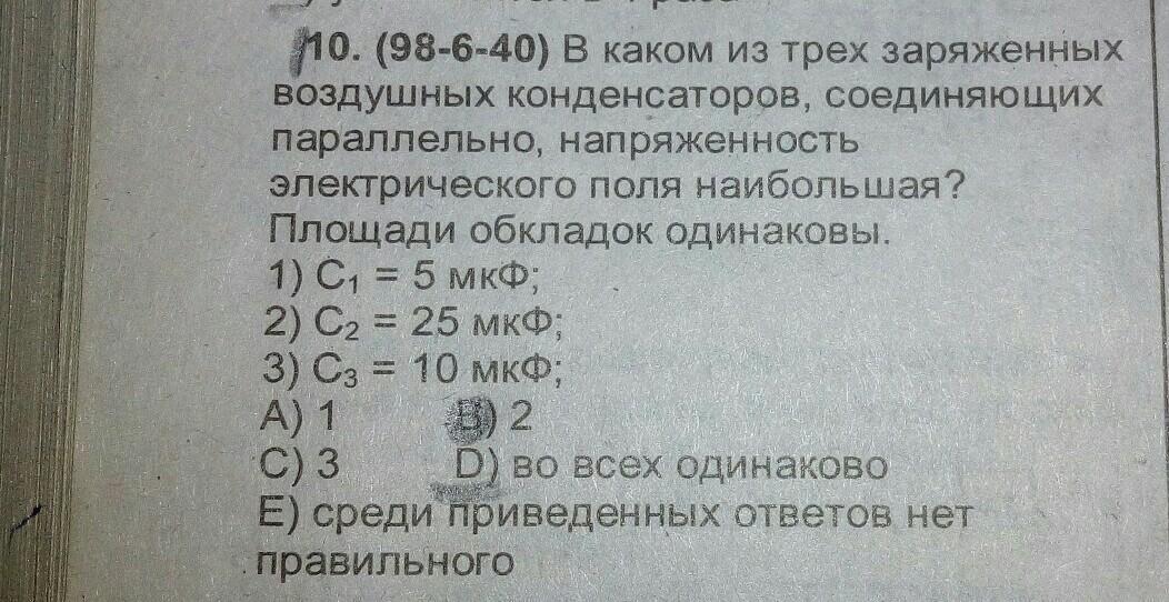 Тема: Соединение конденсаторов. (часто начал спорить с учителем, я думаю что ответ B), учитель D). С объяснением!
