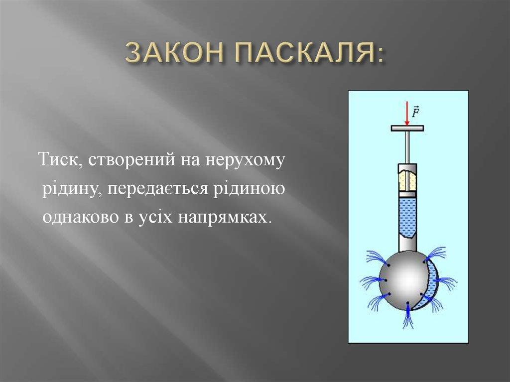 тиск створюваний на нерухому рідину передається рідиною однаково в усіх напрямках