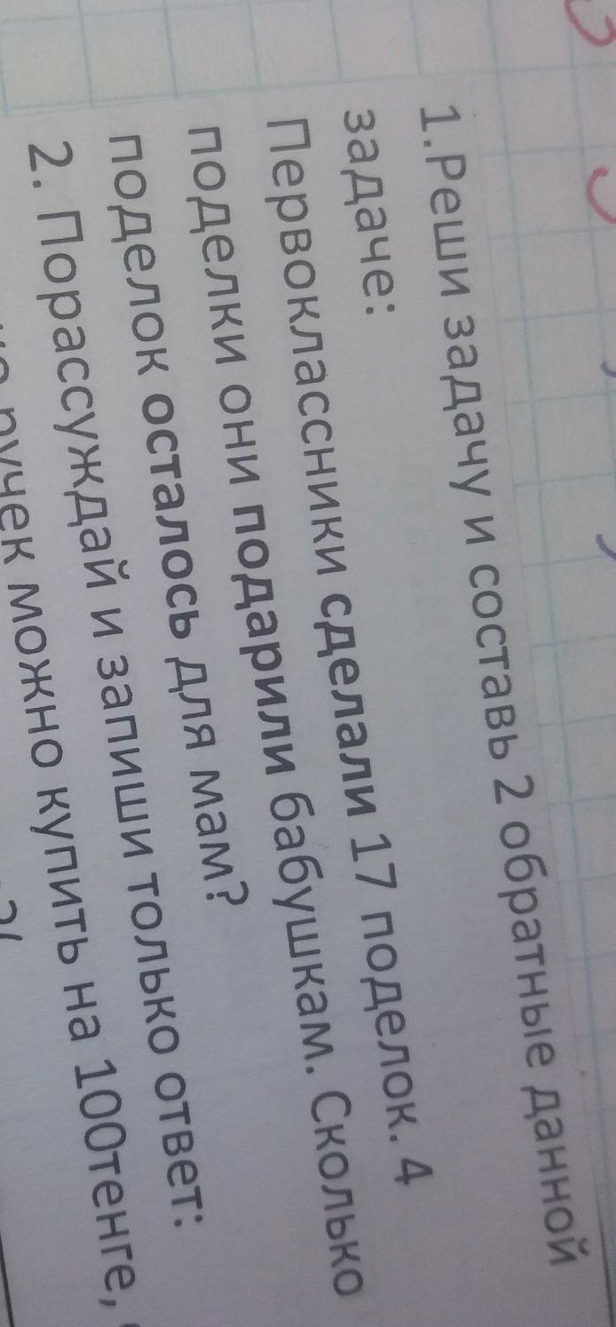 1)Первоклассники сделали 17 поделок. 15 поделок они подорили мамам. Ск поделок они подорили бабушкам.