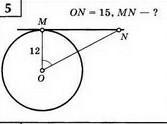 т.к. МN - касательная к окружности, то, по определению, ОМ перпендикулярна МN. Отсюда следует, что треугольник ОМN - прямоугольный с прямым углом OMN. По т. Пифагора найдем один из катетов (МN) :