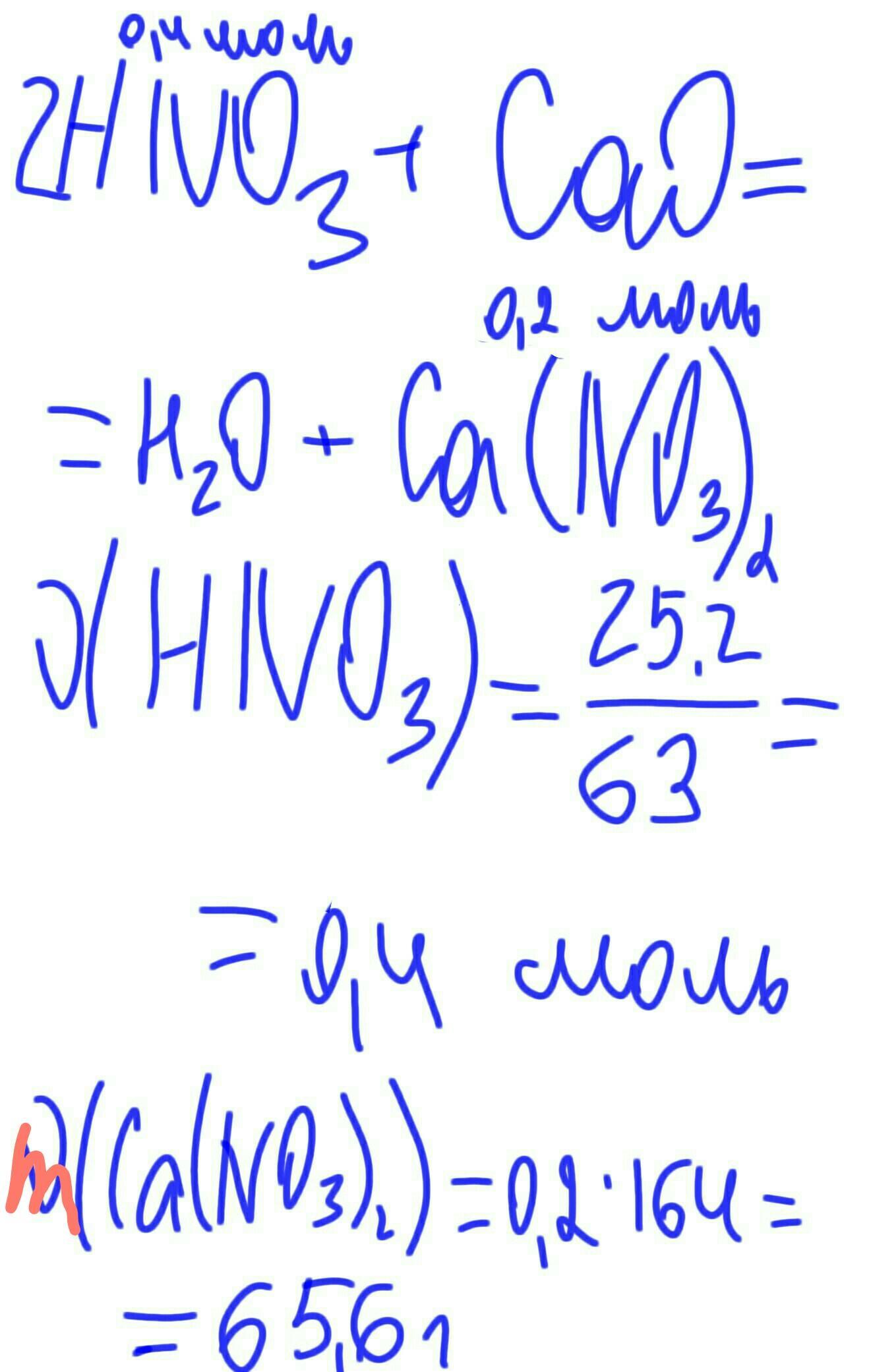 вычислите массу кальций нитрата Ca(NO3)2, который образовался в результате взаимодействия 25,2 г. нитратной кислоты с кальций оксидом.