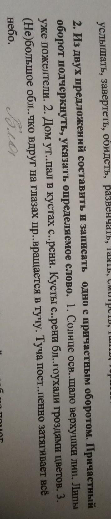 1. Солнце освещало верхушки уже !пожелтевших лип(опр.слово)! - оборот.