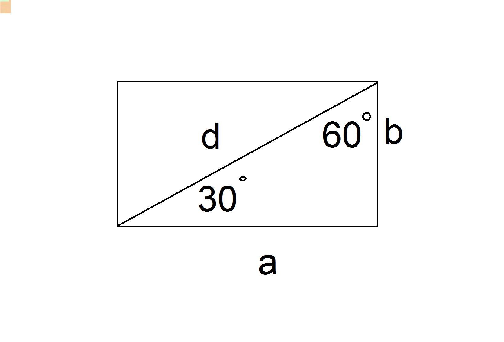 так как диагональ образует с меньшей стороной угол 60° то другой угол прямоугольного треугольника = 90°-60°=30°