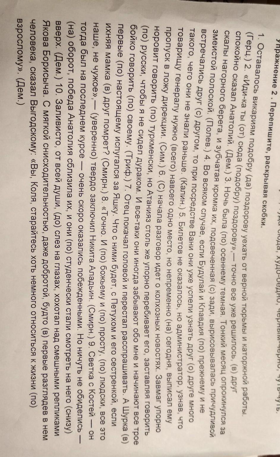 Отсюда, да поздорову ..., вдруг, по осеннему, сзади, по-прежнему, с другом, о друге, всего навсего, на сегодня, сначала, по туркменски, по русски, по-своему, впервые, по настоящему, вдруг, по божьему и по просту, по людски, наоборот, по студенчески, снизу вверх, до слез, впервые, по взрослому.