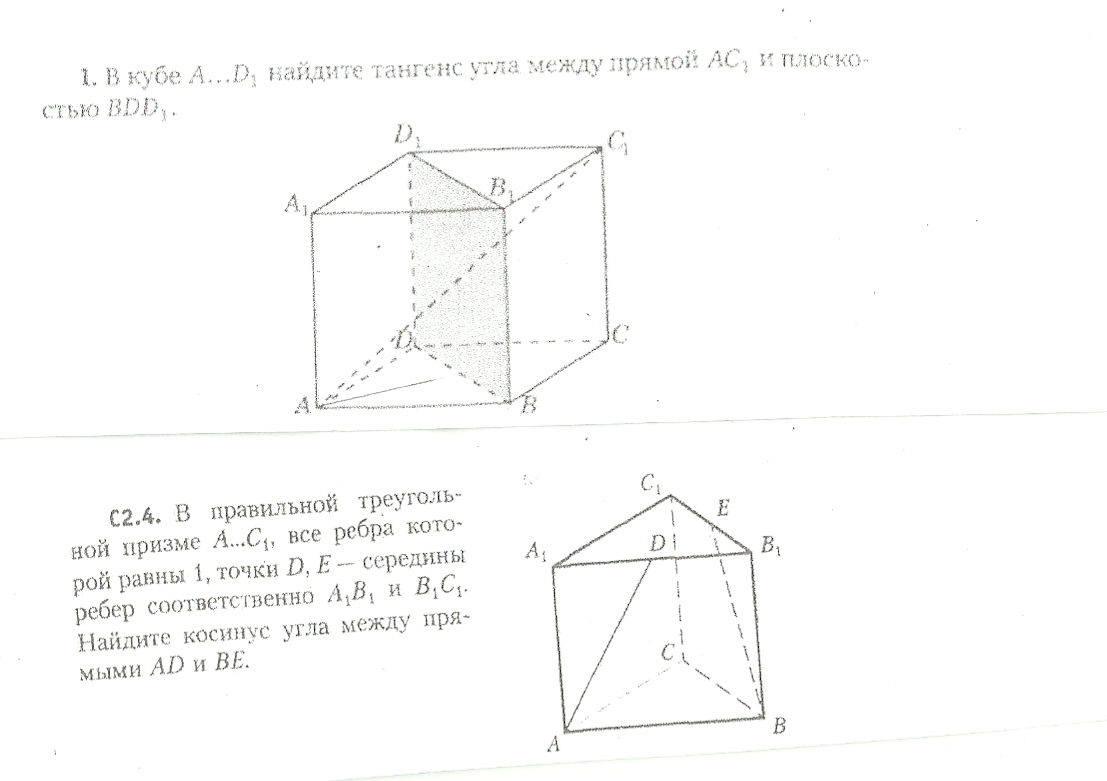 1) Найти тангенс угла между прямой АС1 и плоскостью BDD1.